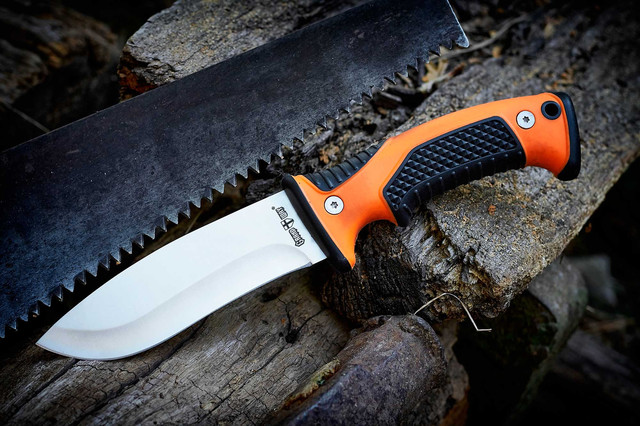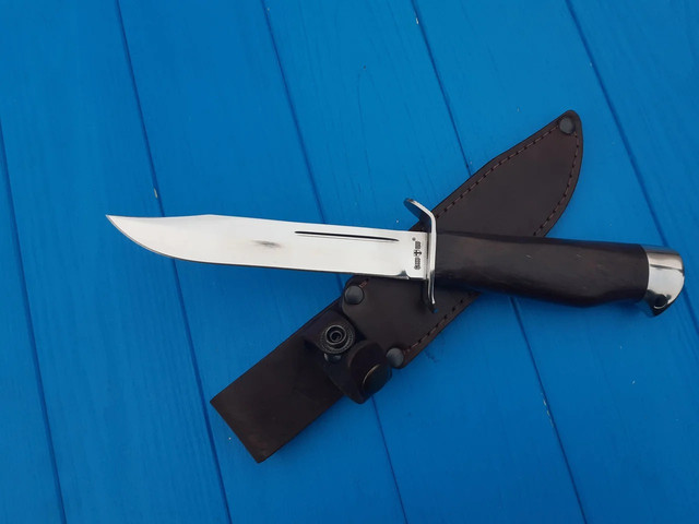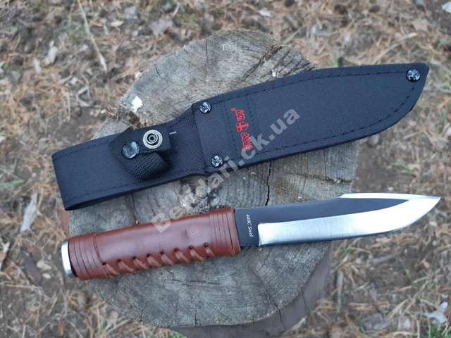 За допомогою упору, рука ніколи не зісковзне на лезо. Клинок зроблений з 440С сталі. Ручка зроблена з металу з деревом. Твердість клинка 58 одиниць за шкалою Роквелла (HRC).